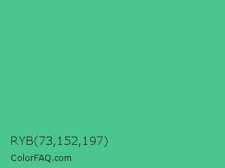 RYB 73,152,197 Color is a normal green color and the nearest color is Ocean Green #48bf91. Hex code #49c590 and RGB value is rgb(73,197,144). In RGB color space, this color is composed of 29% red, 77% green, 56% blue, In CMYK color space, this color is composed of 63% cyan, 0% magenta, 27% yellow , 23% black , In HSL color space, this color has a hue angle of 154° , 52% saturation and 53% lightness.