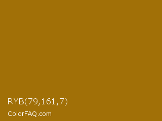 RYB 79,161,7 Color is a normal orange color and the nearest color is Buttered Rum #a1750d. Hex code #a17007 and RGB value is rgb(161,112,7). In RGB color space, this color is composed of 63% red, 44% green, 3% blue, In CMYK color space, this color is composed of 0% cyan, 30% magenta, 96% yellow , 37% black , In HSL color space, this color has a hue angle of 41° , 92% saturation and 33% lightness.