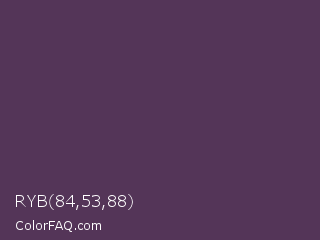 RYB 84,53,88 Color is a dark magenta color and the nearest color is Voodoo #533455. Hex code #543558 and RGB value is rgb(84,53,88). In RGB color space, this color is composed of 33% red, 21% green, 35% blue, In CMYK color space, this color is composed of 5% cyan, 40% magenta, 0% yellow , 65% black , In HSL color space, this color has a hue angle of 293° , 25% saturation and 28% lightness.