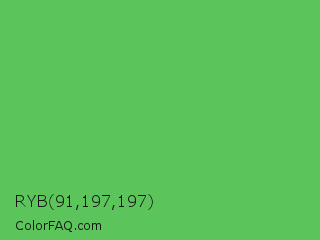 RYB 91,197,197 Color is a normal green color and the nearest color is Fern #63b76c. Hex code #5bc55b and RGB value is rgb(91,197,91). In RGB color space, this color is composed of 36% red, 77% green, 36% blue, In CMYK color space, this color is composed of 54% cyan, 0% magenta, 54% yellow , 23% black , In HSL color space, this color has a hue angle of 120° , 48% saturation and 56% lightness.
