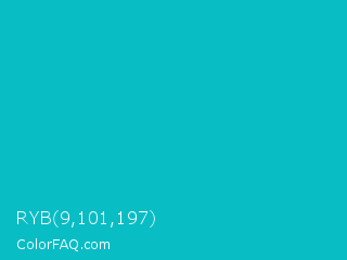 RYB 9,101,197 Color is a normal cyan color and the nearest color is Turquoise Surf #00c5cd. Hex code #09bdc5 and RGB value is rgb(9,189,197). In RGB color space, this color is composed of 4% red, 74% green, 77% blue, In CMYK color space, this color is composed of 95% cyan, 4% magenta, 0% yellow , 23% black , In HSL color space, this color has a hue angle of 183° , 91% saturation and 40% lightness.