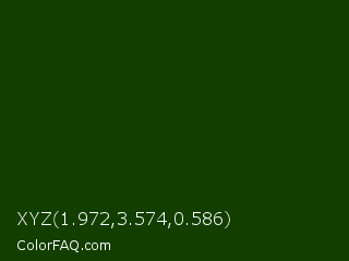 XYZ 1.972,3.574,0.586 Color is a very dark green color and the nearest color is Dark Fern #0a480d. Hex code #123e00 and RGB value is rgb(18,62,0). In RGB color space, this color is composed of 7% red, 24% green, 0% blue, In CMYK color space, this color is composed of 71% cyan, 0% magenta, 100% yellow , 76% black , In HSL color space, this color has a hue angle of 103° , 100% saturation and 12% lightness.