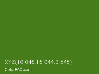 XYZ 10.046,16.044,3.545 Color is a dark green color and the nearest color is Sap Green #507d2a. Hex code #467d1a and RGB value is rgb(70,125,26). In RGB color space, this color is composed of 27% red, 49% green, 10% blue, In CMYK color space, this color is composed of 44% cyan, 0% magenta, 79% yellow , 51% black , In HSL color space, this color has a hue angle of 93° , 66% saturation and 30% lightness.