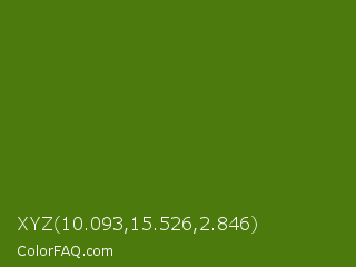 XYZ 10.093,15.526,2.846 Color is a dark green color and the nearest color is Avocado #568203. Hex code #4d7a0d and RGB value is rgb(77,122,13). In RGB color space, this color is composed of 30% red, 48% green, 5% blue, In CMYK color space, this color is composed of 37% cyan, 0% magenta, 89% yellow , 52% black , In HSL color space, this color has a hue angle of 85° , 81% saturation and 26% lightness.