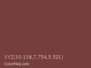 XYZ 10.118,7.754,5.521 Color is a normal red color and the nearest color is Medium Tuscan Red #79443b. Hex code #763f3e and RGB value is rgb(118,63,62). In RGB color space, this color is composed of 46% red, 25% green, 24% blue, In CMYK color space, this color is composed of 0% cyan, 47% magenta, 47% yellow , 54% black , In HSL color space, this color has a hue angle of 1° , 31% saturation and 35% lightness.