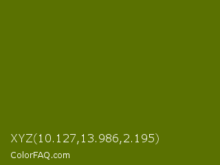 XYZ 10.127,13.986,2.195 Color is a very dark lime color and the nearest color is Avocado #568203. Hex code #5a7101 and RGB value is rgb(90,113,1). In RGB color space, this color is composed of 35% red, 44% green, 0% blue, In CMYK color space, this color is composed of 20% cyan, 0% magenta, 99% yellow , 56% black , In HSL color space, this color has a hue angle of 72° , 98% saturation and 22% lightness.