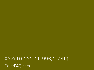 XYZ 10.151,11.998,1.781 Color is a very dark yellow color and the nearest color is Bronze Yellow #737000. Hex code #676400 and RGB value is rgb(103,100,0). In RGB color space, this color is composed of 40% red, 39% green, 0% blue, In CMYK color space, this color is composed of 0% cyan, 3% magenta, 100% yellow , 60% black , In HSL color space, this color has a hue angle of 58° , 100% saturation and 20% lightness.