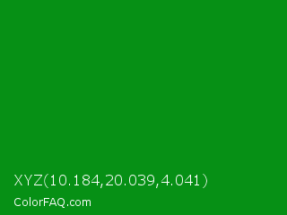 XYZ 10.184,20.039,4.041 Color is a dark green color and the nearest color is India Green #138808. Hex code #069015 and RGB value is rgb(6,144,21). In RGB color space, this color is composed of 2% red, 56% green, 8% blue, In CMYK color space, this color is composed of 96% cyan, 0% magenta, 85% yellow , 44% black , In HSL color space, this color has a hue angle of 127° , 92% saturation and 29% lightness.