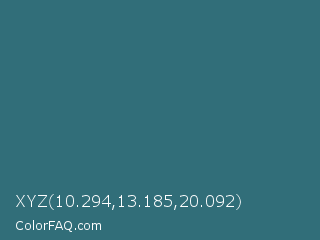 XYZ 10.294,13.185,20.092 Color is a normal cyan color and the nearest color is Ming #36747d. Hex code #316e79 and RGB value is rgb(49,110,121). In RGB color space, this color is composed of 19% red, 43% green, 47% blue, In CMYK color space, this color is composed of 60% cyan, 9% magenta, 0% yellow , 53% black , In HSL color space, this color has a hue angle of 189° , 42% saturation and 33% lightness.