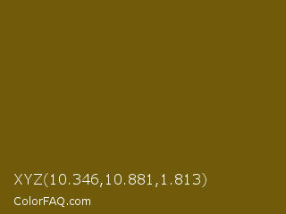 XYZ 10.346,10.881,1.813 Color is a dark yellow color and the nearest color is Spicy Mustard #74640d. Hex code #6f5b09 and RGB value is rgb(111,91,9). In RGB color space, this color is composed of 44% red, 36% green, 4% blue, In CMYK color space, this color is composed of 0% cyan, 18% magenta, 92% yellow , 56% black , In HSL color space, this color has a hue angle of 48° , 85% saturation and 24% lightness.