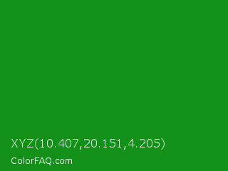 XYZ 10.407,20.151,4.205 Color is a normal green color and the nearest color is India Green #138808. Hex code #139018 and RGB value is rgb(19,144,24). In RGB color space, this color is composed of 7% red, 56% green, 9% blue, In CMYK color space, this color is composed of 87% cyan, 0% magenta, 83% yellow , 44% black , In HSL color space, this color has a hue angle of 122° , 77% saturation and 32% lightness.