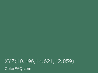 XYZ 10.496,14.621,12.859 Color is a normal green color and the nearest color is Amazon #3b7a57. Hex code #40755e and RGB value is rgb(64,117,94). In RGB color space, this color is composed of 25% red, 46% green, 37% blue, In CMYK color space, this color is composed of 45% cyan, 0% magenta, 20% yellow , 54% black , In HSL color space, this color has a hue angle of 154° , 29% saturation and 35% lightness.