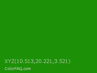 XYZ 10.513,20.221,3.521 Color is a dark green color and the nearest color is India Green #138808. Hex code #1d9006 and RGB value is rgb(29,144,6). In RGB color space, this color is composed of 11% red, 56% green, 2% blue, In CMYK color space, this color is composed of 80% cyan, 0% magenta, 96% yellow , 44% black , In HSL color space, this color has a hue angle of 110° , 92% saturation and 29% lightness.