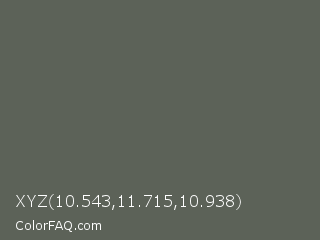 XYZ 10.543,11.715,10.938 Color is a normal green color and the nearest color is Chicago #5d5c58. Hex code #5c6258 and RGB value is rgb(92,98,88). In RGB color space, this color is composed of 36% red, 38% green, 35% blue, In CMYK color space, this color is composed of 6% cyan, 0% magenta, 10% yellow , 62% black , In HSL color space, this color has a hue angle of 96° , 5% saturation and 36% lightness.