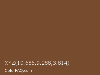 XYZ 10.685,9.288,3.814 Color is a normal orange color and the nearest color is Old Copper #724a2f. Hex code #774c2e and RGB value is rgb(119,76,46). In RGB color space, this color is composed of 47% red, 30% green, 18% blue, In CMYK color space, this color is composed of 0% cyan, 36% magenta, 61% yellow , 53% black , In HSL color space, this color has a hue angle of 25° , 44% saturation and 32% lightness.