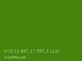 XYZ 10.697,17.557,3.112 Color is a dark green color and the nearest color is Avocado #568203. Hex code #46830a and RGB value is rgb(70,131,10). In RGB color space, this color is composed of 27% red, 51% green, 4% blue, In CMYK color space, this color is composed of 47% cyan, 0% magenta, 92% yellow , 49% black , In HSL color space, this color has a hue angle of 90° , 86% saturation and 28% lightness.