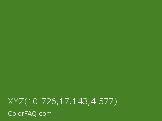 XYZ 10.726,17.143,4.577 Color is a normal green color and the nearest color is Sap Green #507d2a. Hex code #468126 and RGB value is rgb(70,129,38). In RGB color space, this color is composed of 27% red, 51% green, 15% blue, In CMYK color space, this color is composed of 46% cyan, 0% magenta, 71% yellow , 49% black , In HSL color space, this color has a hue angle of 99° , 54% saturation and 33% lightness.