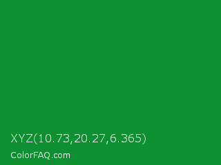 XYZ 10.73,20.27,6.365 Color is a normal green color and the nearest color is North Texas Green #059033. Hex code #0e9032 and RGB value is rgb(14,144,50). In RGB color space, this color is composed of 5% red, 56% green, 20% blue, In CMYK color space, this color is composed of 90% cyan, 0% magenta, 65% yellow , 44% black , In HSL color space, this color has a hue angle of 137° , 82% saturation and 31% lightness.