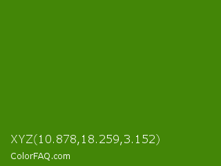 XYZ 10.878,18.259,3.152 Color is a dark green color and the nearest color is Avocado #568203. Hex code #438607 and RGB value is rgb(67,134,7). In RGB color space, this color is composed of 26% red, 53% green, 3% blue, In CMYK color space, this color is composed of 50% cyan, 0% magenta, 95% yellow , 47% black , In HSL color space, this color has a hue angle of 92° , 90% saturation and 28% lightness.