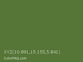 XYZ 10.891,15.155,5.841 Color is a normal green color and the nearest color is Chalet Green #516e3d. Hex code #557636 and RGB value is rgb(85,118,54). In RGB color space, this color is composed of 33% red, 46% green, 21% blue, In CMYK color space, this color is composed of 28% cyan, 0% magenta, 54% yellow , 54% black , In HSL color space, this color has a hue angle of 91° , 37% saturation and 34% lightness.