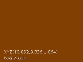 XYZ 10.892,8.336,1.064 Color is a dark orange color and the nearest color is Cinnamon #7b3f00. Hex code #814001 and RGB value is rgb(129,64,1). In RGB color space, this color is composed of 51% red, 25% green, 0% blue, In CMYK color space, this color is composed of 0% cyan, 50% magenta, 99% yellow , 49% black , In HSL color space, this color has a hue angle of 30° , 98% saturation and 25% lightness.
