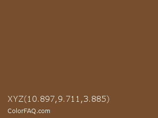 XYZ 10.897,9.711,3.885 Color is a normal orange color and the nearest color is Old Copper #724a2f. Hex code #774f2e and RGB value is rgb(119,79,46). In RGB color space, this color is composed of 47% red, 31% green, 18% blue, In CMYK color space, this color is composed of 0% cyan, 34% magenta, 61% yellow , 53% black , In HSL color space, this color has a hue angle of 27° , 44% saturation and 32% lightness.