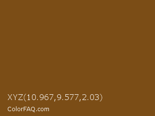 XYZ 10.967,9.577,2.03 Color is a dark orange color and the nearest color is Raw Umber #734a12. Hex code #7b4d16 and RGB value is rgb(123,77,22). In RGB color space, this color is composed of 48% red, 30% green, 9% blue, In CMYK color space, this color is composed of 0% cyan, 37% magenta, 82% yellow , 52% black , In HSL color space, this color has a hue angle of 33° , 70% saturation and 28% lightness.