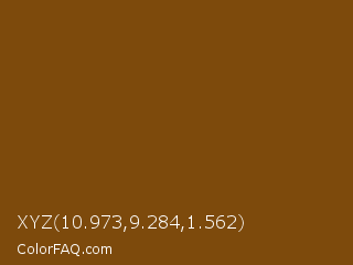 XYZ 10.973,9.284,1.562 Color is a dark orange color and the nearest color is Raw Umber #734a12. Hex code #7d4a0c and RGB value is rgb(125,74,12). In RGB color space, this color is composed of 49% red, 29% green, 5% blue, In CMYK color space, this color is composed of 0% cyan, 41% magenta, 90% yellow , 51% black , In HSL color space, this color has a hue angle of 33° , 82% saturation and 27% lightness.