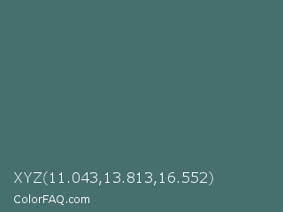 XYZ 11.043,13.813,16.552 Color is a normal cyan color and the nearest color is Hookers Green #49796b. Hex code #476f6d and RGB value is rgb(71,111,109). In RGB color space, this color is composed of 28% red, 44% green, 43% blue, In CMYK color space, this color is composed of 36% cyan, 0% magenta, 2% yellow , 56% black , In HSL color space, this color has a hue angle of 177° , 22% saturation and 36% lightness.