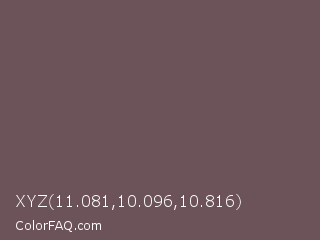 XYZ 11.081,10.096,10.816 Color is a normal red color and the nearest color is Zambezi #685558. Hex code #6c5359 and RGB value is rgb(108,83,89). In RGB color space, this color is composed of 42% red, 33% green, 35% blue, In CMYK color space, this color is composed of 0% cyan, 23% magenta, 18% yellow , 58% black , In HSL color space, this color has a hue angle of 346° , 13% saturation and 37% lightness.