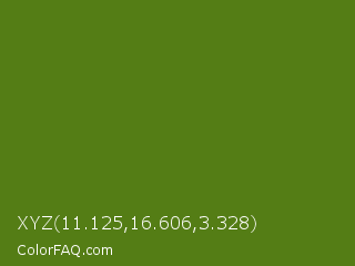 XYZ 11.125,16.606,3.328 Color is a dark green color and the nearest color is Avocado #568203. Hex code #547d15 and RGB value is rgb(84,125,21). In RGB color space, this color is composed of 33% red, 49% green, 8% blue, In CMYK color space, this color is composed of 33% cyan, 0% magenta, 83% yellow , 51% black , In HSL color space, this color has a hue angle of 84° , 71% saturation and 29% lightness.