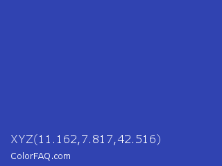 XYZ 11.162,7.817,42.516 Color is a normal blue color and the nearest color is Governor Bay #2f3cb3. Hex code #3043b1 and RGB value is rgb(48,67,177). In RGB color space, this color is composed of 19% red, 26% green, 69% blue, In CMYK color space, this color is composed of 73% cyan, 62% magenta, 0% yellow , 31% black , In HSL color space, this color has a hue angle of 231° , 57% saturation and 44% lightness.