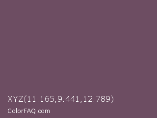 XYZ 11.165,9.441,12.789 Color is a normal magenta color and the nearest color is Zambezi #685558. Hex code #6d4d62 and RGB value is rgb(109,77,98). In RGB color space, this color is composed of 43% red, 30% green, 38% blue, In CMYK color space, this color is composed of 0% cyan, 29% magenta, 10% yellow , 57% black , In HSL color space, this color has a hue angle of 321° , 17% saturation and 36% lightness.