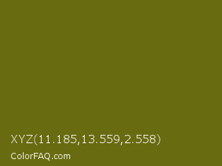 XYZ 11.185,13.559,2.558 Color is a dark yellow color and the nearest color is Olivetone #716e10. Hex code #696b11 and RGB value is rgb(105,107,17). In RGB color space, this color is composed of 41% red, 42% green, 7% blue, In CMYK color space, this color is composed of 2% cyan, 0% magenta, 84% yellow , 58% black , In HSL color space, this color has a hue angle of 61° , 73% saturation and 24% lightness.