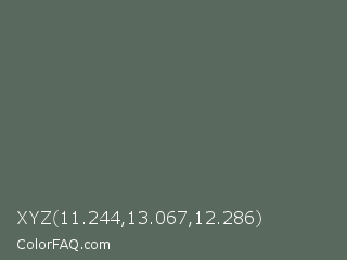 XYZ 11.244,13.067,12.286 Color is a normal green color and the nearest color is Finlandia #556d56. Hex code #5a695d and RGB value is rgb(90,105,93). In RGB color space, this color is composed of 35% red, 41% green, 36% blue, In CMYK color space, this color is composed of 14% cyan, 0% magenta, 11% yellow , 59% black , In HSL color space, this color has a hue angle of 132° , 8% saturation and 38% lightness.