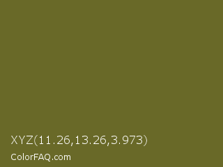 XYZ 11.26,13.26,3.973 Color is a dark yellow color and the nearest color is Fern Frond #657220. Hex code #696928 and RGB value is rgb(105,105,40). In RGB color space, this color is composed of 41% red, 41% green, 16% blue, In CMYK color space, this color is composed of 0% cyan, 0% magenta, 62% yellow , 59% black , In HSL color space, this color has a hue angle of 60° , 45% saturation and 28% lightness.