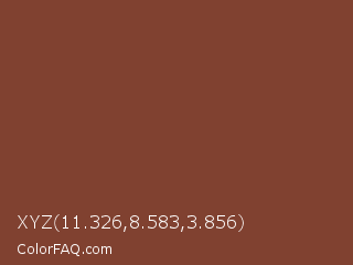 XYZ 11.326,8.583,3.856 Color is a normal red color and the nearest color is Nutmeg #81422c. Hex code #804130 and RGB value is rgb(128,65,48). In RGB color space, this color is composed of 50% red, 25% green, 19% blue, In CMYK color space, this color is composed of 0% cyan, 49% magenta, 63% yellow , 50% black , In HSL color space, this color has a hue angle of 13° , 45% saturation and 35% lightness.
