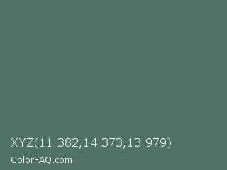 XYZ 11.382,14.373,13.979 Color is a normal green color and the nearest color is Como #517c66. Hex code #4f7163 and RGB value is rgb(79,113,99). In RGB color space, this color is composed of 31% red, 44% green, 39% blue, In CMYK color space, this color is composed of 30% cyan, 0% magenta, 12% yellow , 56% black , In HSL color space, this color has a hue angle of 155° , 18% saturation and 38% lightness.