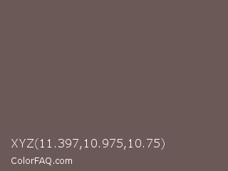 XYZ 11.397,10.975,10.75 Color is a normal red color and the nearest color is Dorado #6b5755. Hex code #6b5958 and RGB value is rgb(107,89,88). In RGB color space, this color is composed of 42% red, 35% green, 35% blue, In CMYK color space, this color is composed of 0% cyan, 17% magenta, 18% yellow , 58% black , In HSL color space, this color has a hue angle of 3° , 10% saturation and 38% lightness.