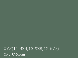 XYZ 11.434,13.938,12.677 Color is a normal green color and the nearest color is Finlandia #556d56. Hex code #566e5e and RGB value is rgb(86,110,94). In RGB color space, this color is composed of 34% red, 43% green, 37% blue, In CMYK color space, this color is composed of 22% cyan, 0% magenta, 15% yellow , 57% black , In HSL color space, this color has a hue angle of 140° , 12% saturation and 38% lightness.