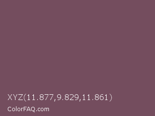 XYZ 11.877,9.829,11.861 Color is a normal rose color and the nearest color is Ferra #704f50. Hex code #744d5e and RGB value is rgb(116,77,94). In RGB color space, this color is composed of 45% red, 30% green, 37% blue, In CMYK color space, this color is composed of 0% cyan, 34% magenta, 19% yellow , 55% black , In HSL color space, this color has a hue angle of 334° , 20% saturation and 38% lightness.