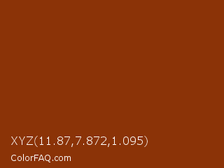 XYZ 11.87,7.872,1.095 Color is a dark orange color and the nearest color is Smokey Topaz #832a0d. Hex code #8b3307 and RGB value is rgb(139,51,7). In RGB color space, this color is composed of 55% red, 20% green, 3% blue, In CMYK color space, this color is composed of 0% cyan, 63% magenta, 95% yellow , 45% black , In HSL color space, this color has a hue angle of 20° , 90% saturation and 29% lightness.