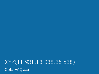 XYZ 11.931,13.038,36.538 Color is a normal blue color and the nearest color is Sapphire Blue #0067a5. Hex code #0d6aa3 and RGB value is rgb(13,106,163). In RGB color space, this color is composed of 5% red, 42% green, 64% blue, In CMYK color space, this color is composed of 92% cyan, 35% magenta, 0% yellow , 36% black , In HSL color space, this color has a hue angle of 203° , 85% saturation and 35% lightness.
