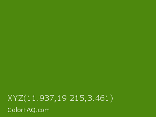 XYZ 11.937,19.215,3.461 Color is a dark green color and the nearest color is Avocado #568203. Hex code #4d880d and RGB value is rgb(77,136,13). In RGB color space, this color is composed of 30% red, 53% green, 5% blue, In CMYK color space, this color is composed of 43% cyan, 0% magenta, 90% yellow , 47% black , In HSL color space, this color has a hue angle of 89° , 83% saturation and 29% lightness.