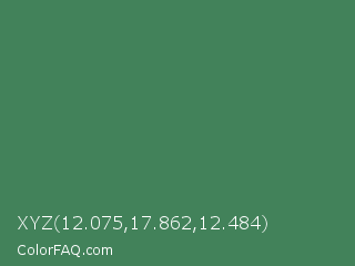 XYZ 12.075,17.862,12.484 Color is a normal green color and the nearest color is Goblin #3d7d52. Hex code #42825a and RGB value is rgb(66,130,90). In RGB color space, this color is composed of 26% red, 51% green, 35% blue, In CMYK color space, this color is composed of 49% cyan, 0% magenta, 31% yellow , 49% black , In HSL color space, this color has a hue angle of 143° , 33% saturation and 38% lightness.