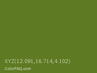 XYZ 12.091,16.714,4.102 Color is a normal lime color and the nearest color is Fern Frond #657220. Hex code #5f7b22 and RGB value is rgb(95,123,34). In RGB color space, this color is composed of 37% red, 48% green, 13% blue, In CMYK color space, this color is composed of 23% cyan, 0% magenta, 72% yellow , 52% black , In HSL color space, this color has a hue angle of 79° , 57% saturation and 31% lightness.