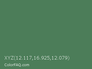 XYZ 12.117,16.925,12.079 Color is a normal green color and the nearest color is Como #517c66. Hex code #4c7d59 and RGB value is rgb(76,125,89). In RGB color space, this color is composed of 30% red, 49% green, 35% blue, In CMYK color space, this color is composed of 39% cyan, 0% magenta, 29% yellow , 51% black , In HSL color space, this color has a hue angle of 136° , 24% saturation and 39% lightness.
