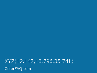XYZ 12.147,13.796,35.741 Color is a normal blue color and the nearest color is Sapphire Blue #0067a5. Hex code #0b6ea1 and RGB value is rgb(11,110,161). In RGB color space, this color is composed of 4% red, 43% green, 63% blue, In CMYK color space, this color is composed of 93% cyan, 32% magenta, 0% yellow , 37% black , In HSL color space, this color has a hue angle of 200° , 87% saturation and 34% lightness.