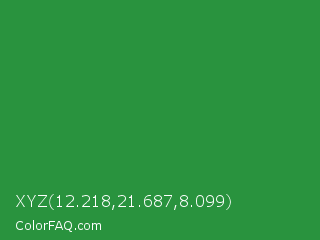 XYZ 12.218,21.687,8.099 Color is a normal green color and the nearest color is Sea Green #2e8b57. Hex code #29933e and RGB value is rgb(41,147,62). In RGB color space, this color is composed of 16% red, 58% green, 24% blue, In CMYK color space, this color is composed of 72% cyan, 0% magenta, 58% yellow , 42% black , In HSL color space, this color has a hue angle of 132° , 56% saturation and 37% lightness.