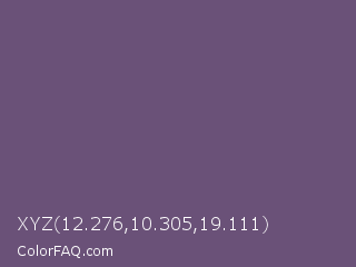 XYZ 12.276,10.305,19.111 Color is a normal purple color and the nearest color is Smoky #605b73. Hex code #6a5178 and RGB value is rgb(106,81,120). In RGB color space, this color is composed of 42% red, 32% green, 47% blue, In CMYK color space, this color is composed of 12% cyan, 33% magenta, 0% yellow , 53% black , In HSL color space, this color has a hue angle of 278° , 19% saturation and 39% lightness.